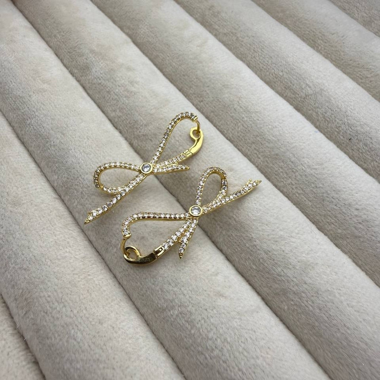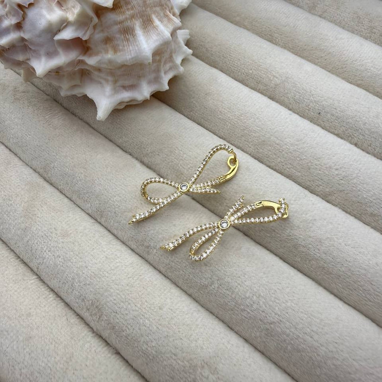 این گوشوارهها با فرم روبان پاپیونی و نگینهای ظریف، جلوهای لطیف، زنانه و مجلسی دارند. طراحی منحنی و سنگکاری دقیق، حس هدیه، عشق و زیبایی را منتقل میکند. مناسب برای مراسم خاص، هدیه دادن یا ست کردن با لباسهای لطیف و عاشقانه.