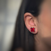 چه گوشوارهی ظریف و جذابی! 🍀 این گوشوارهی زیبا با طرح شبدر چهاربرگ و رنگ قرمز دلرباش، واقعاً چشمنوازه و میتونه جلوهای خاص به استایل شما ببخشه. ✨