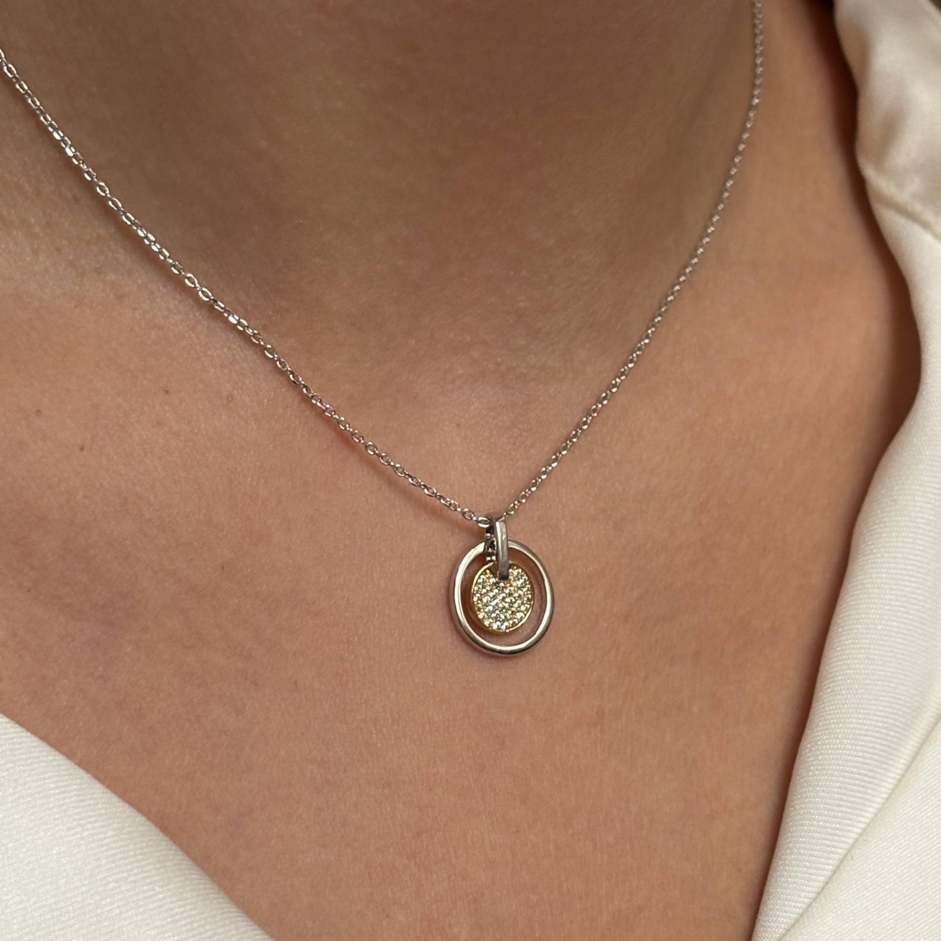 گردنبند نقرهای با آویز دایرهای نگیندار – مینیمالیسم درخشان در قاب مدرن