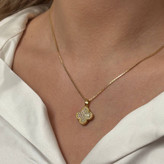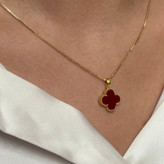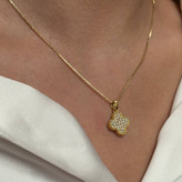 گردنبند طلایی با آویز شبدر دو رو – درخشش و عمق در یک قاب
