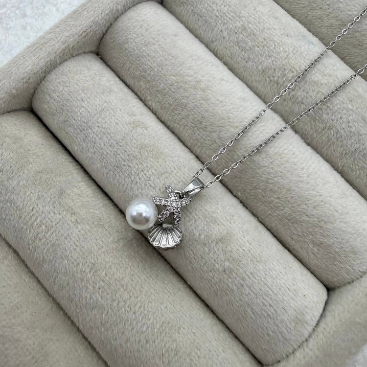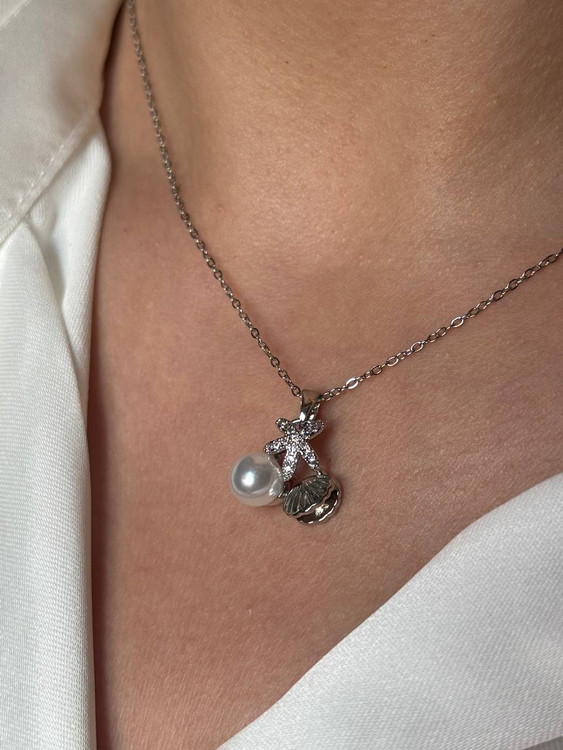 گردنبند با آویز صدف مروارید و ستاره در دو رنگ