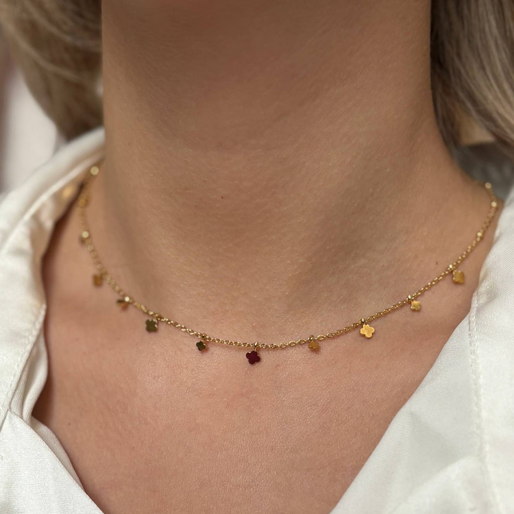 🔸 فرم: زنجیر کوتاه با آویزهای شبدر چهارپر طلایی