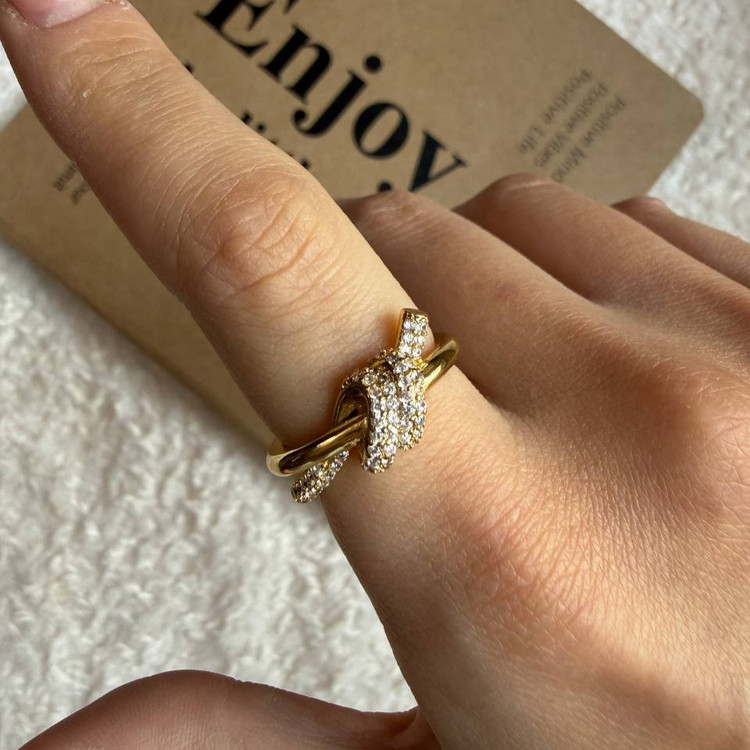 این انگشتر با فرم گرهدار و نگینهای ظریف، نمادی از اتصال، عشق و تعهد است. طراحی پیچخوردهی آن با درخشش نگینها، جلوهای مجلل و احساسی ایجاد میکند—مناسب برای استایلهای عاشقانه، مجلسی یا هدیههای خاص.