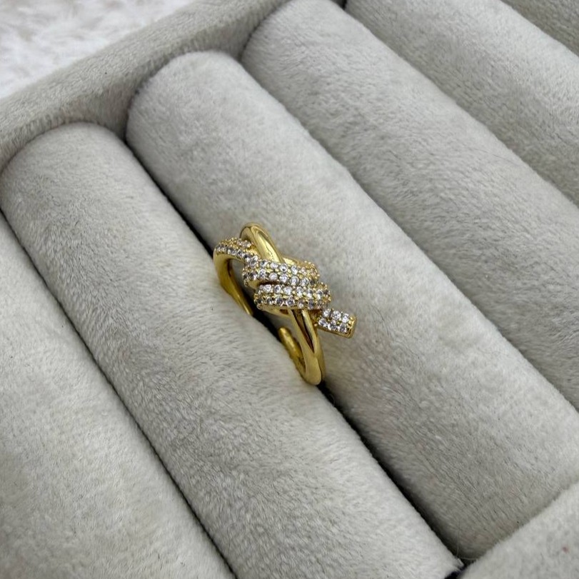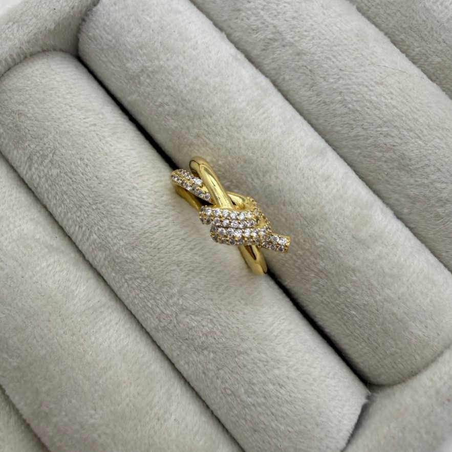 این انگشتر با فرم گرهدار و نگینهای ظریف، نمادی از اتصال، عشق و تعهد است. طراحی پیچخوردهی آن با درخشش نگینها، جلوهای مجلل و احساسی ایجاد میکند—مناسب برای استایلهای عاشقانه، مجلسی یا هدیههای خاص.