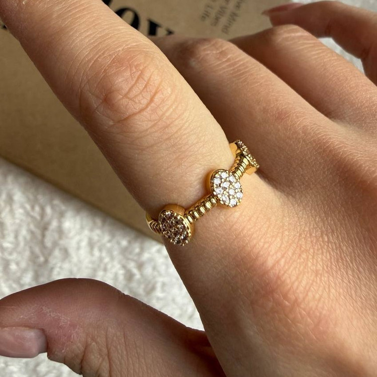 این انگشتر با سه فرم دایرهای برجسته روی یک بند بافتدار، جلوهای خاص، مدرن و مجلل دارد. بدون استفاده از نگین، زیبایی آن در فرمهای حجمی و بافت طلاییاش نهفته است. مناسب برای کسانی که به دنبال طراحی متفاوت و درخشش بیپیرایه هستند.