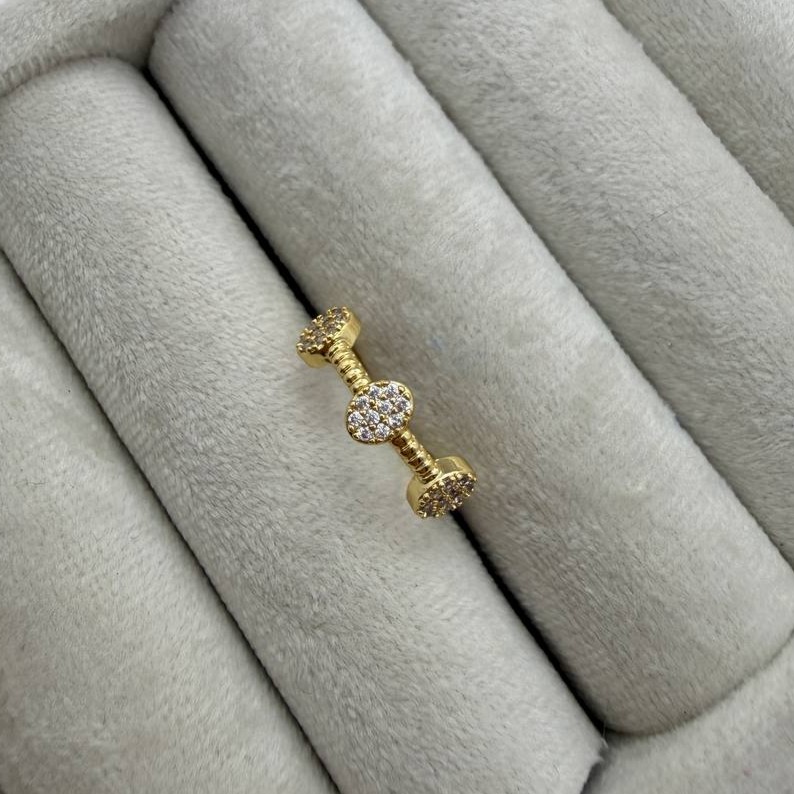 این انگشتر با سه فرم دایرهای برجسته روی یک بند بافتدار، جلوهای خاص، مدرن و مجلل دارد. بدون استفاده از نگین، زیبایی آن در فرمهای حجمی و بافت طلاییاش نهفته است. مناسب برای کسانی که به دنبال طراحی متفاوت و درخشش بیپیرایه هستند.