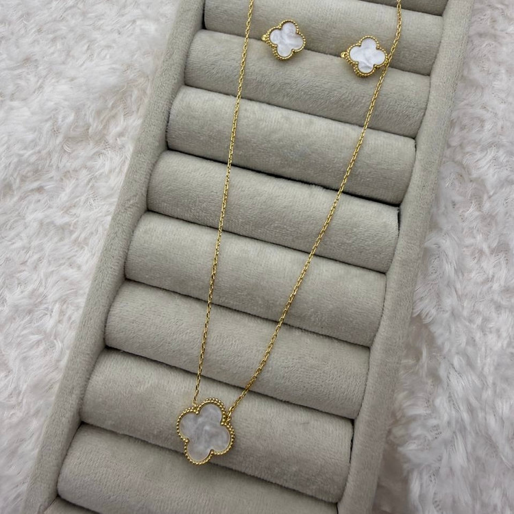 نیم ست ونکلیف سفید تک گل های کوالیتی