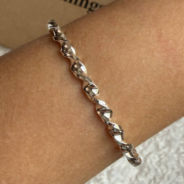 دستبند نقرهای با طراحی پیچخورده – سادگی در فرم، درخشش در بافت