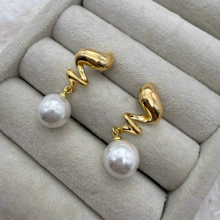 این گوشوارهها با طراحی منحصربهفرد و فرم موجدار طلایی، ترکیبی از هنر مدرن و لطافت کلاسیک هستن. بخش بالایی با خطوط خمیده و زیگزاگی، به مروارید سفید و صیقلی در انتها ختم میشه؛ ترکیبی چشمنواز از حرکت، نور و ظرافت زنانه. رنگ طلایی گرم در کنار مروارید، جلوهای مجلسی و خاص به چهرهی شما میبخشه.