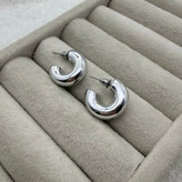این گوشوارهها با طراحی حلقهای ضخیم و سطح براق، انتخابی شیک و مینیمال برای استایلهای روزمره یا رسمی هستن. فرم گرد و حجیم اونها، جلوهای جسورانه و مدرن به چهرهی شما میبخشه. رنگ نقرهای با پرداخت آینهای، انعکاس نور رو به زیبایی نمایش میده و با هر رنگ لباسی قابل ست کردنه.