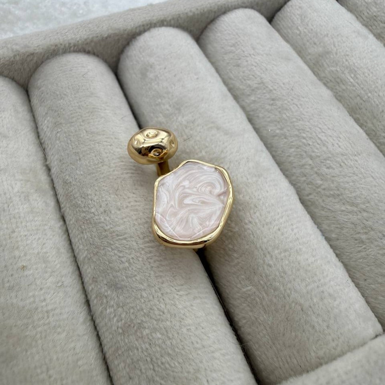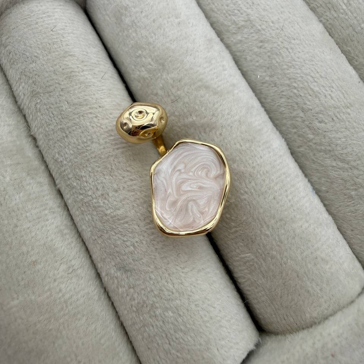 این انگشتر با سنگ سفید بافتدار و قاب طلایی، یه قطعهی هنری و خاصه. فرم نامنظم سنگ، حس طبیعی و منحصربهفرد بودن رو منتقل میکنه، در حالی که قاب طلایی اون رو به سطحی لوکس و قابل ست ارتقا میده. مناسب برای کسانی که به دنبال اکسسوری متفاوت، احساسی و چشمگیر هستن.