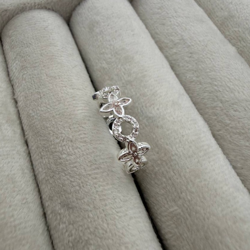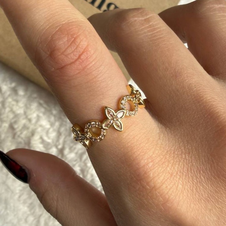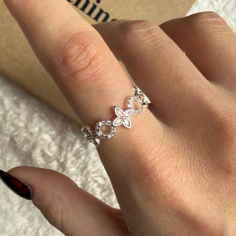 این دو انگشتر با طراحی گلهای ریز و حلقههای منظم، حس لطافت و فرمهای تکرارشونده رو منتقل میکنن:
