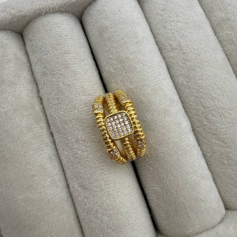- انگشتر طلایی با طراحی مشابه، اما با رنگ گرمتر و جلوهای لوکستر
