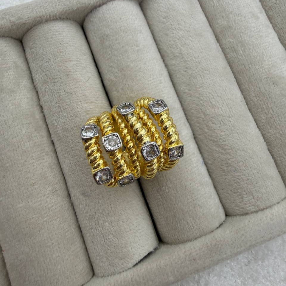 ست دو انگشتر طنابی طلایی با نگین مربعی – درخشش کلاسیک، فرم قدرتمند