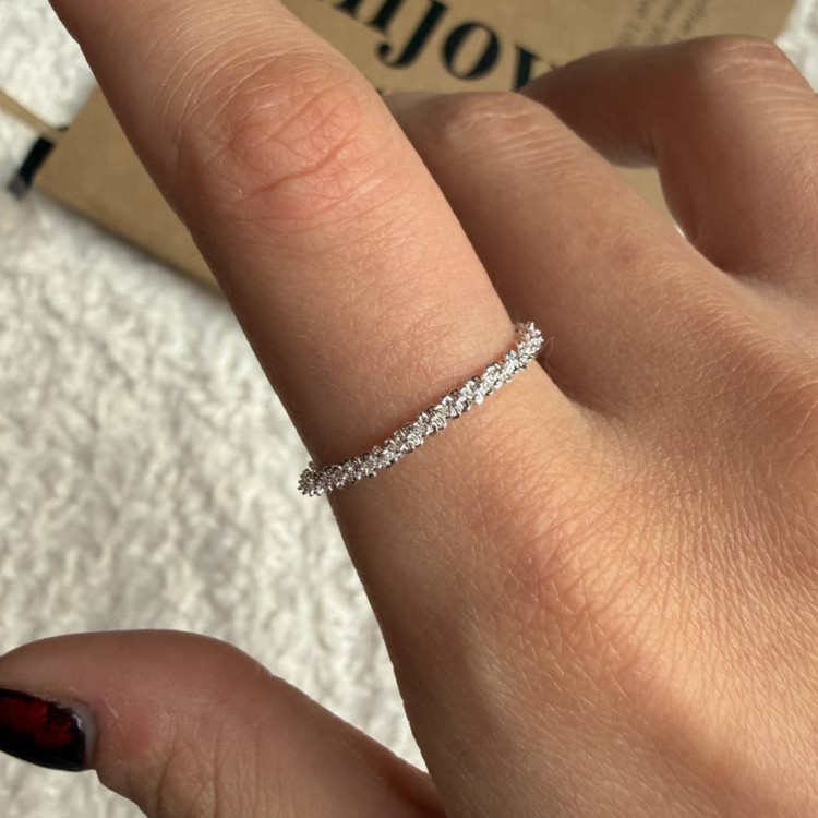 این انگشتر با فرم حلقهای کامل و نگینهای ریز، حس لطافت، مینیمالیسم و درخشش بیوقفه رو منتقل میکنه. مناسب برای کسانی که عاشق اکسسوریهای ساده اما چشمگیر هستن.