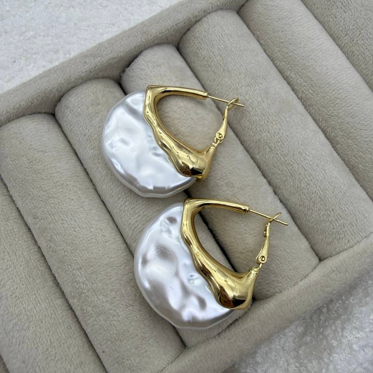این گوشوارهها با طراحی هنری و استفاده از سنگ باروک، ترکیبی از فرم نامنظم و جلوهای لطیف و خاص دارن. بخش سفید بافتدار از جنس مروارید باروک، در کنار اتصال طلایی و پشتمیخی، حس طبیعت و ظرافت رو همزمان منتقل میکنه.