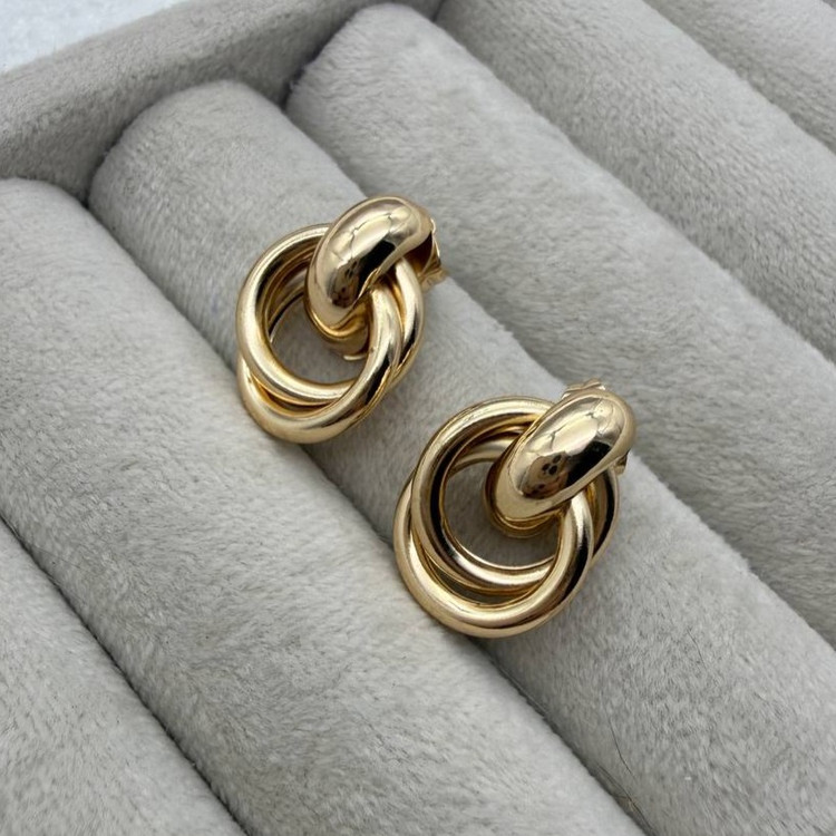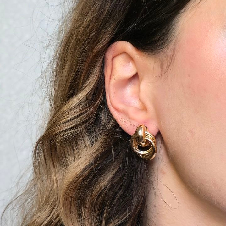 گوشواره طلایی با حلقههای درهمتنیده – قدرت در فرم، درخشش در جزئیات
