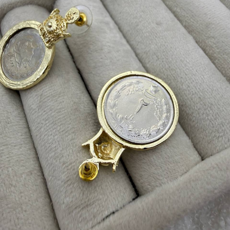 گوشواره سکهای با قاب طلایی تاجدار – شکوه تاریخی، طراحی سلطنتی