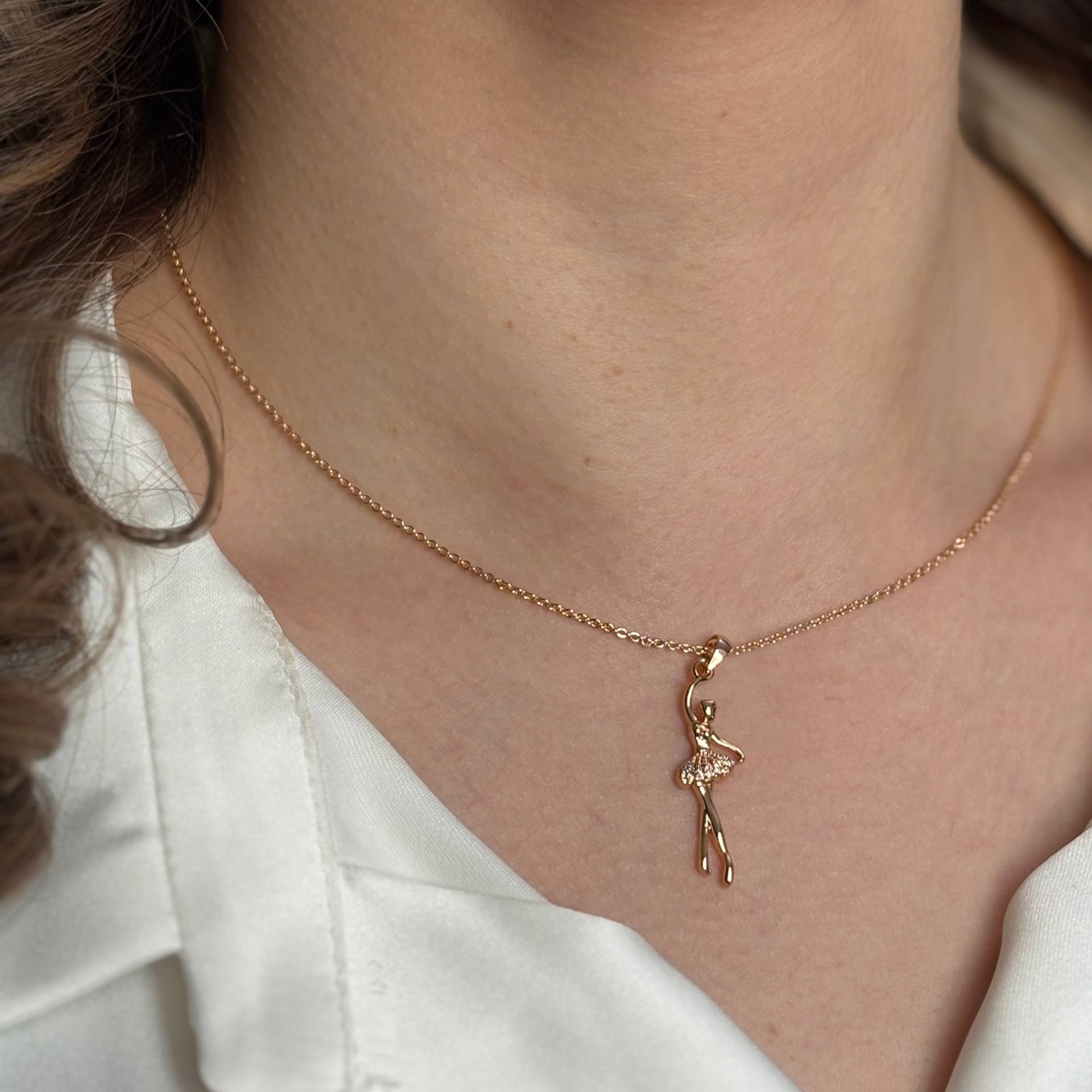 این گردنبند شیک با طراحی بالرین، نمادی از ظرافت، هنر و زیبایی زنانه است. جزئیات دقیق در طراحی آویز و نگینهای ظریف بهکاررفته در قسمت دامن بالرین، جلوهای درخشان و چشمنواز ایجاد کرده و این گردنبند را به انتخابی خاص برای استایلهای رسمی و روزمره تبدیل میکند.