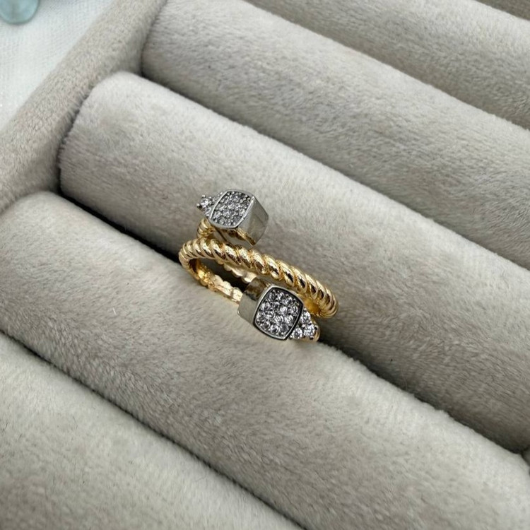این انگشتر طلایی با قاب مربعی و ریزنگینهای درخشان، یک انتخاب شیک و ماندگار برای استایلهای روزمره و مجلسی است. طراحی مربعی آن جلوهای مدرن و متفاوت ایجاد میکند و رنگ طلایی گرم، حس لوکس و جذابیت بیشتری به آن میبخشد. این مدل برای کسانی مناسب است که به زیورآلات ظریف اما چشمگیر علاقه دارند.