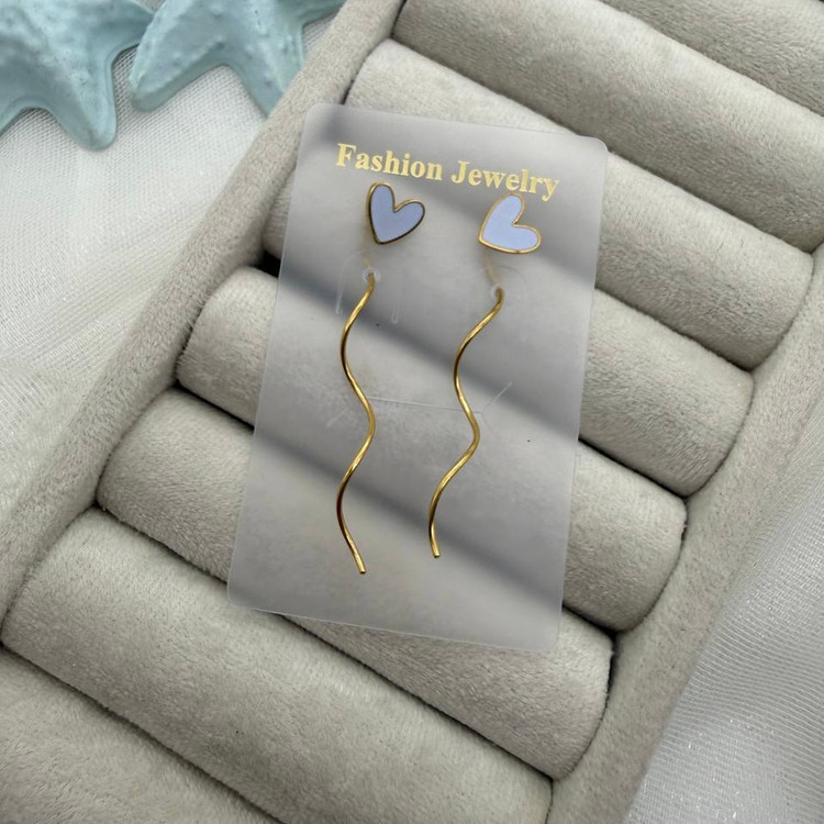 این گوشوارههای قلبی با ترکیب رنگ ملایم و فرم کشیده، جلوهای دخترانه، ظریف و در عین حال فشن ایجاد میکنند. قلبهای کوچک با رنگ آرامشبخش، حس لطافت و عشق را منتقل میکنند و میلهی طلایی موجدار، استایل را مدرنتر و خاصتر نشان میدهد. این مدل سبک و راحت است و برای استایلهای روزمره، قرارهای دوستانه و عکسهای استایلی انتخابی عالی به حساب میآید.