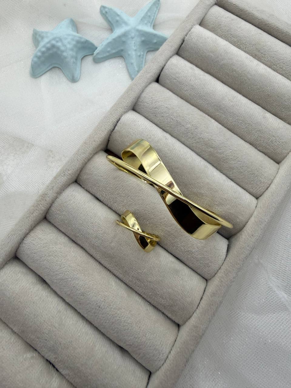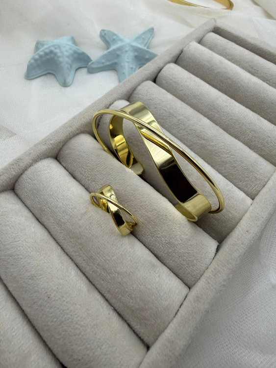 این نیمست خاص با ترکیب طلایی گرم و نقرهای براق، جلوهای مدرن، مینیمال و فوقالعاده شیک ایجاد میکند. طراحی ساده اما چشمگیر بنگل و انگشتر، استایل را ظریفتر و جذابتر نشان میدهد و ترکیب دو رنگ، آن را به انتخابی همهپسند و قابل ست با هر استایلی تبدیل کرده است.