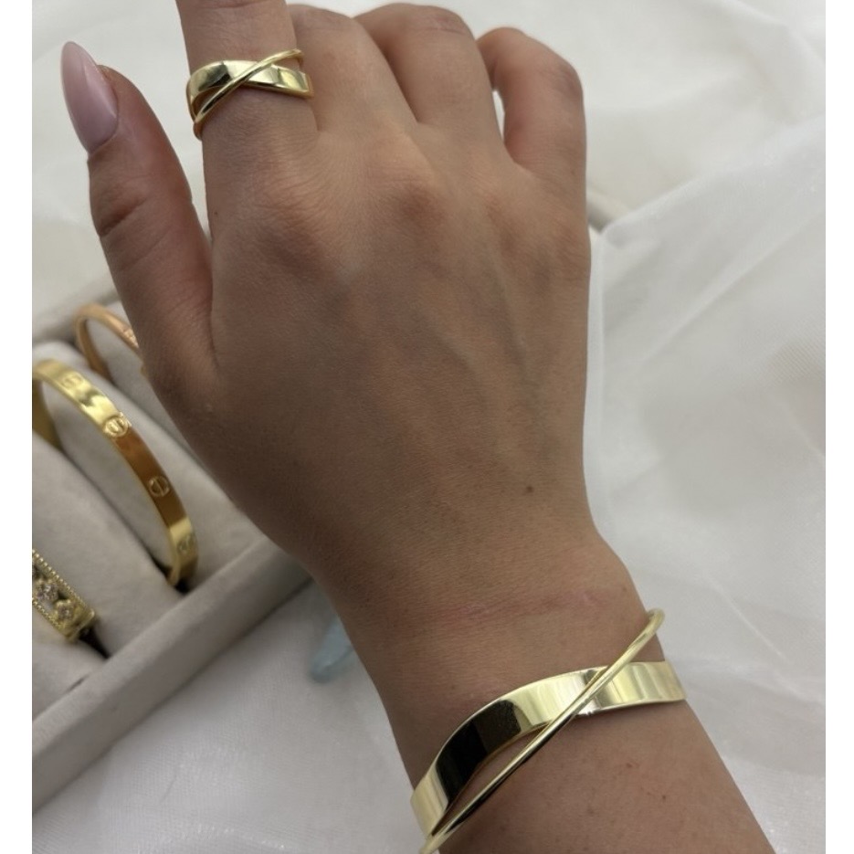 نیمست بنگل و انگشتر طلایی و نقرهای – ترکیب درخشش دو رنگ در یک استایل مدرن