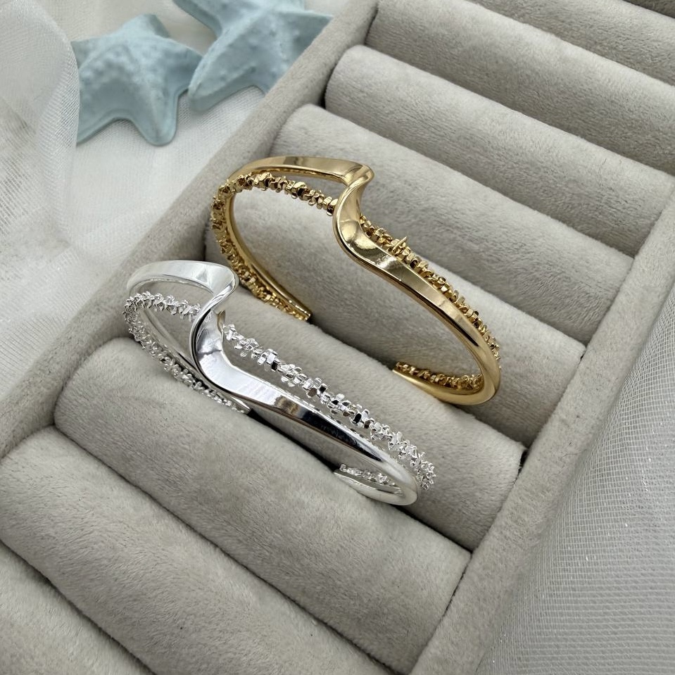 بنگل موجی و خاویاری – درخشش ظریف در دو رنگ طلایی و نقرهای