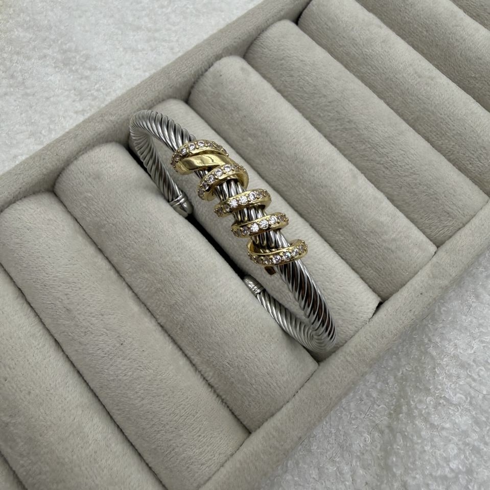 بنگل David Yurman – ظرافت پیچخورده با جزئیات طلایی و نگیندار