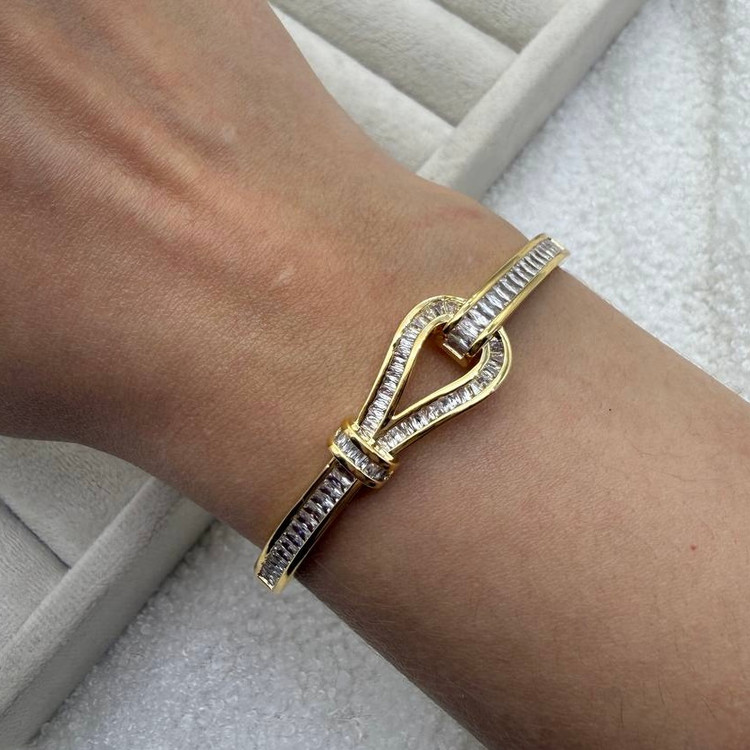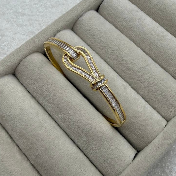 این بنگل فولنگین با چیدمان منظم نگینهای اتمی، جلوهای خیرهکننده و کاملاً لاکچری ایجاد میکند. طراحی الهامگرفته از دستبندهای تنیس، درخشش یکدست و مداومی دارد که روی دست فوقالعاده چشمگیر دیده میشود. فرم ظریف اما پرجلوهی این مدل، آن را به انتخابی ایدهآل برای مهمانیها، استایلهای رسمی و حتی استفاده روزمرهی شیک تبدیل کرده است.