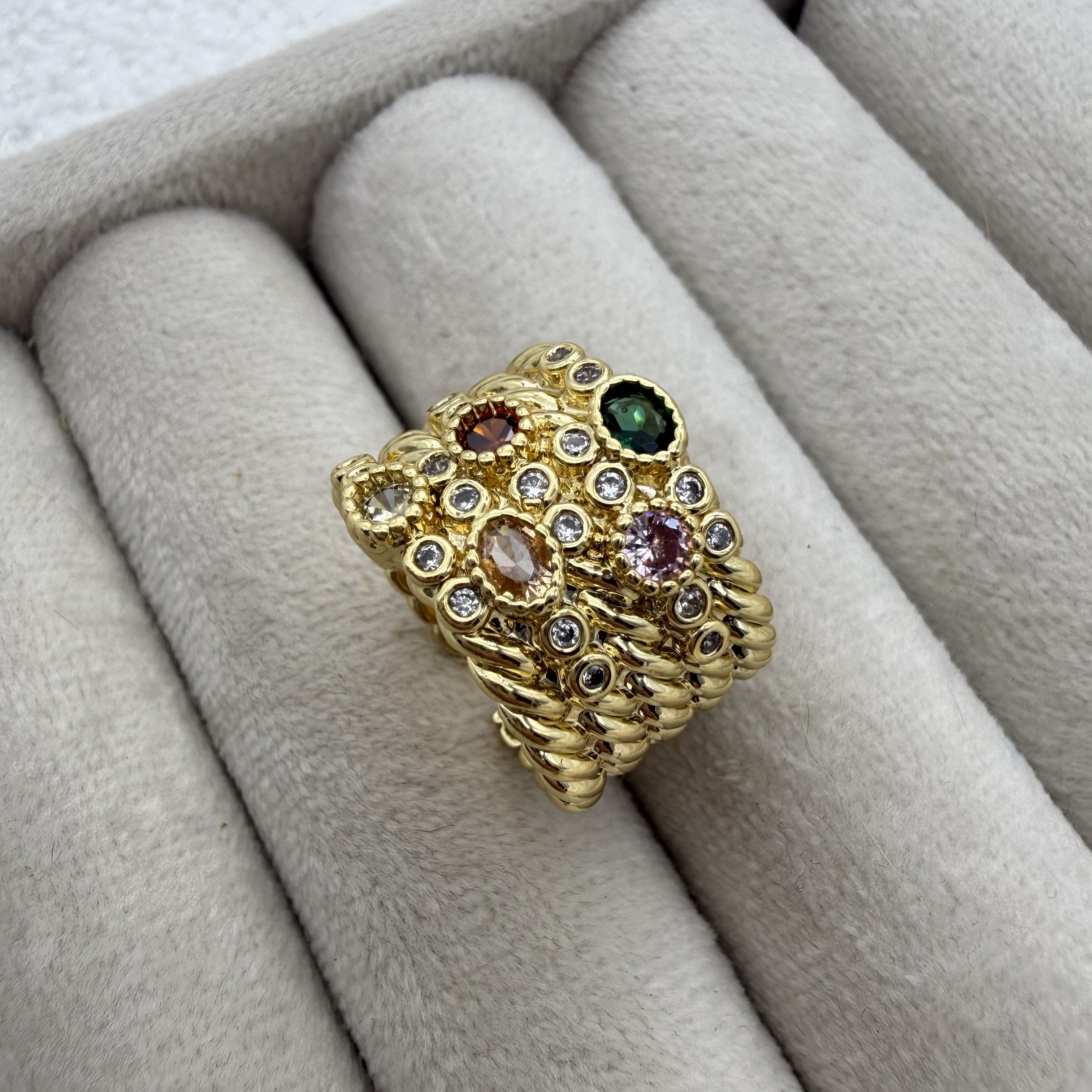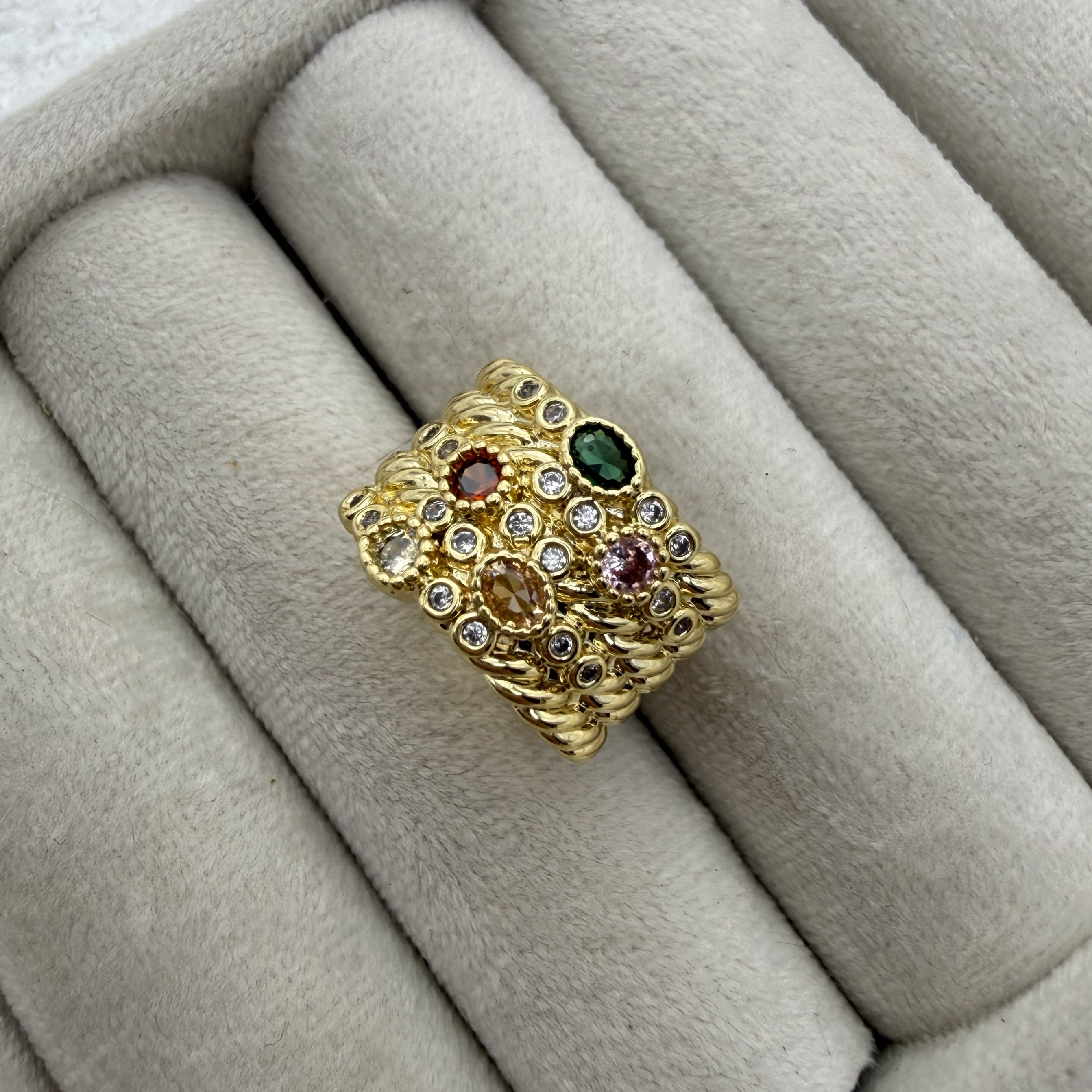 انگششتر پهن جواهری نگین رنگی